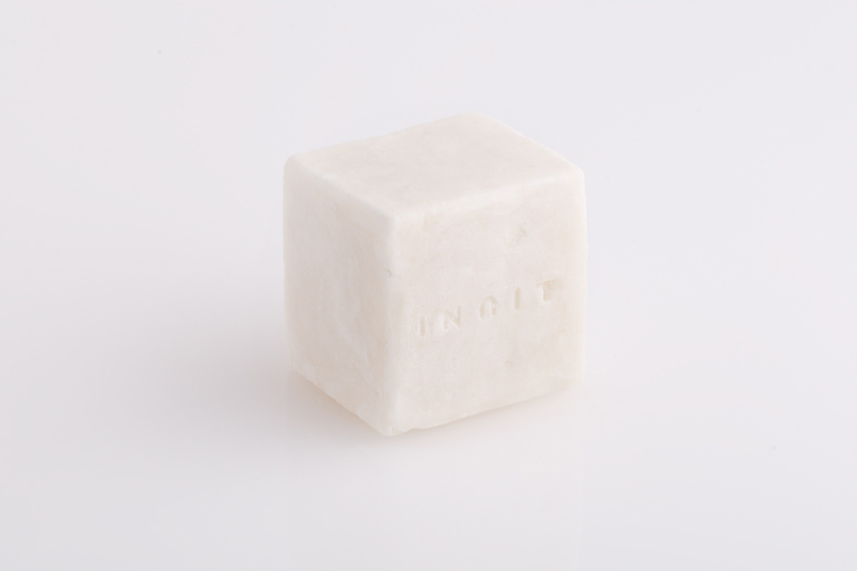 - É usado polímero de milho, biodegradável, compostável e solúvel em água como um protetor para que os sabonetes viajem com segurança